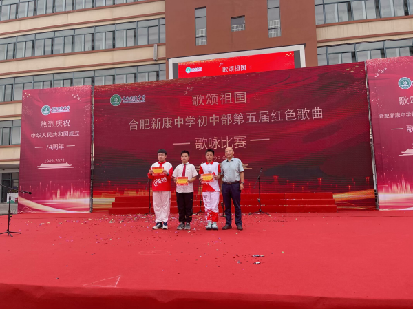这就是我的学校--合肥新康中学。这是一所值得我骄傲、自豪的学校,我在这儿学会了许多知识,懂得了很多道理。她就像一艘巨轮,满载着希望,带着我们劈波斩浪地驶向美好的未来。如果说刚刚步入中学时的生活是一张白纸,那么现在白纸上一定画满了五颜六色的鲜花和气球,记录了我在这里的一个又一个故事,我爱我的学校、我的母校--新康中学!