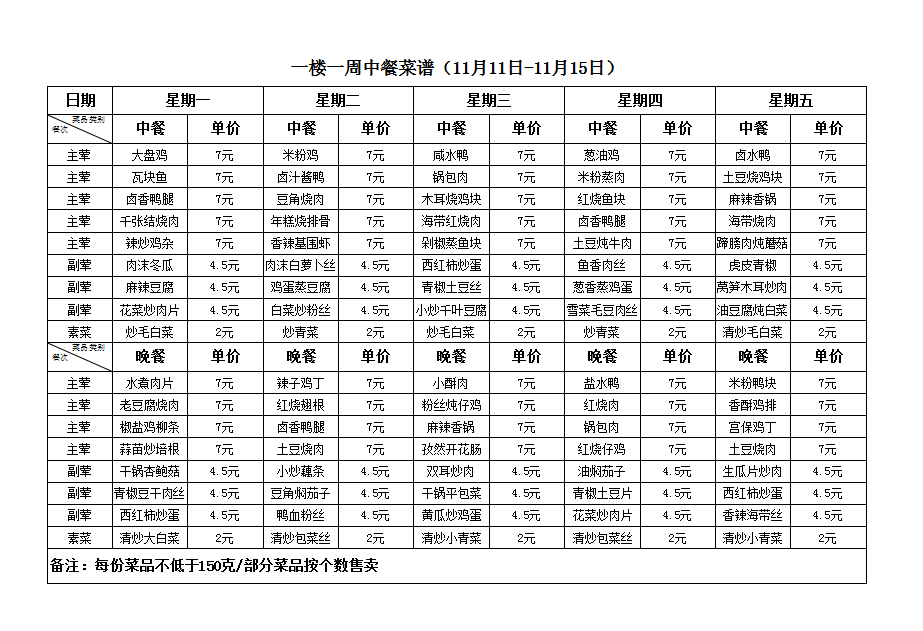 合肥新康中学11.18-11.22一周菜谱