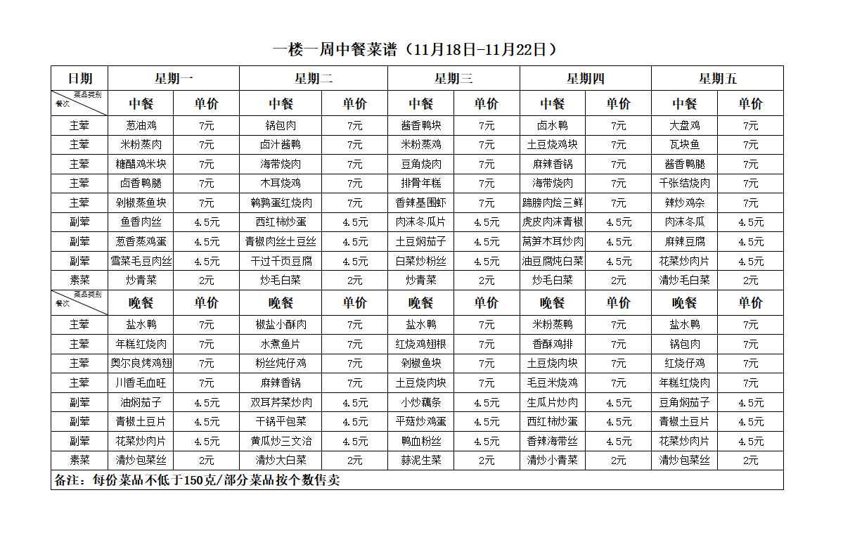 合肥新康中学11.11-11.15一周菜谱