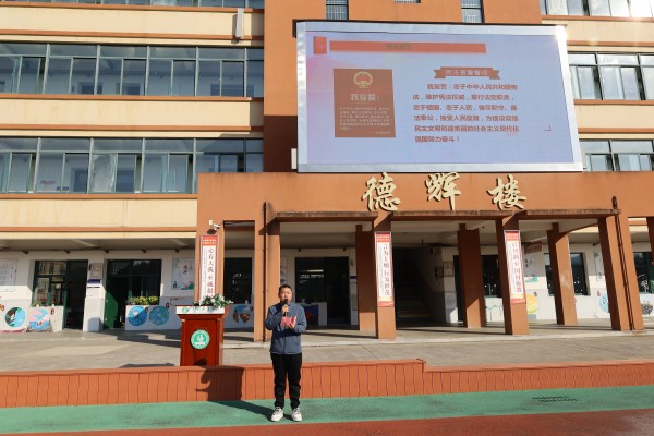 学习宣传宪法,弘扬法治精神。活动最后,徐校长带领同学们在国旗下庄严宣誓。
