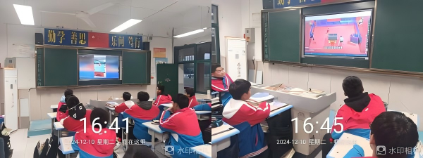 2024年12月10日羽毛球社团课主要教学内容:1.认识羽毛球单双打场地范围,并让学生上讲台画线;2.羽毛球裁判部分规则讲解;3.观看羽毛球操视频并学习相关动作。