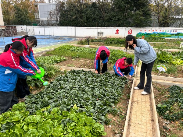 此外,王老师格外重视劳动教育课程。劳动教育是在校园里孩子们走出班级、走进自然的最佳方式之一。课间里、劳动教育课上、放学时间,总能看到王老师带着孩子们拿着劳动工具在劳动基地里“劳作”。拔草、施肥、浇水、播种,四季变化,劳动基地的作物花草也随之变换。通过劳作,换来了收获的果实,换来了孩子们开心的笑容,学生乐在其中,无形间培养了学生们对土地、大自然的热爱。