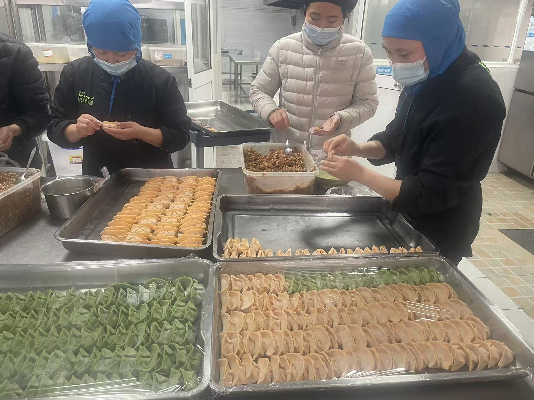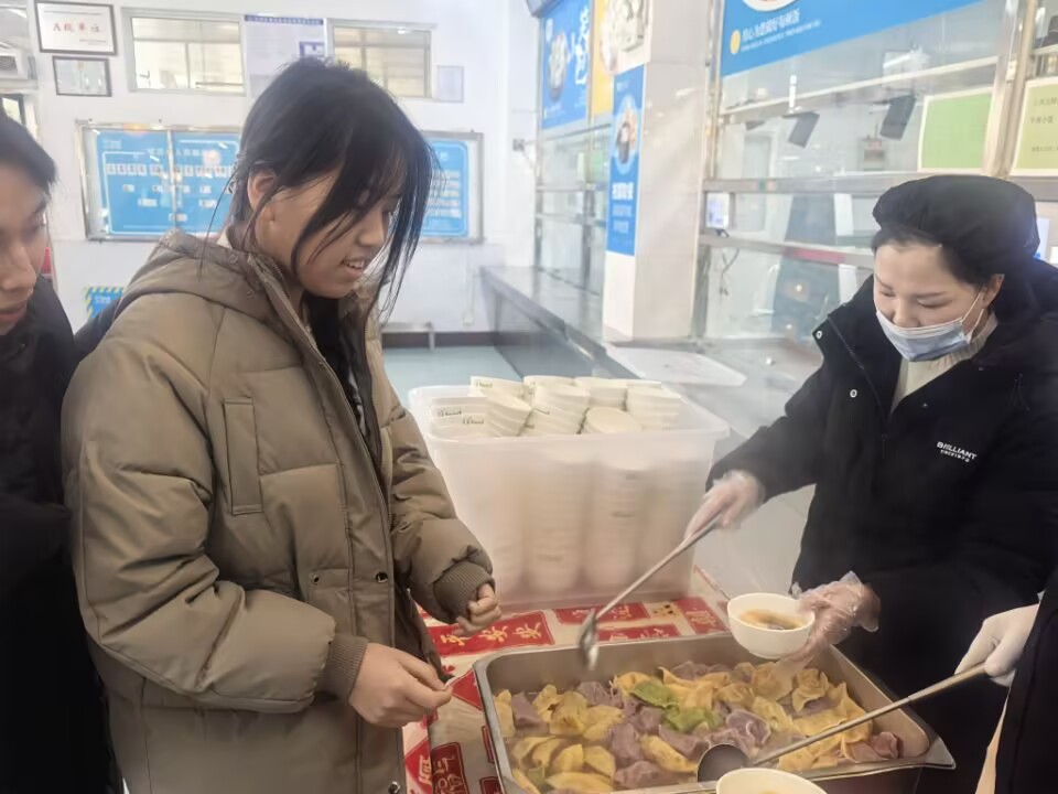 在优芙得食堂,每一颗彩色饺子都是由经验丰富的厨师们手工包捏而成。她们用心地调整着饺子皮的厚度,细心地将色彩丰富的馅料包裹其中,每一个褶皱都蕴含着对高三学子深深的祝福与期待。