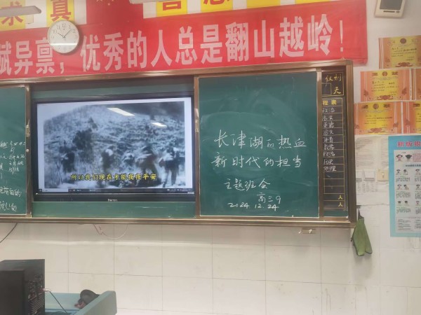 为积极响应爱国主义教育号召,我校各班级于12月24日分别召开了 “长津湖的热血,新时代的担当” 主题班会,以纪念抗美援朝战争中的伟大精神,激励学生在新时代肩负起应有的责任。