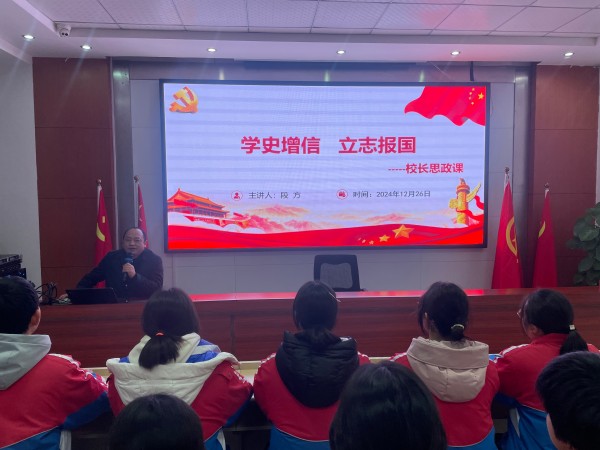 课堂上,段校长深入剖析了中国历史发展脉络,从古代文明的辉煌成就到近代以来的艰难探索与伟大变革,带领同学们深刻领悟中华民族在历史长河中展现出的强大生命力与坚韧精神。他强调,学史能让我们在回溯历史中汲取智慧,增强对国家和民族的认同感,树立起强烈的文化自信。