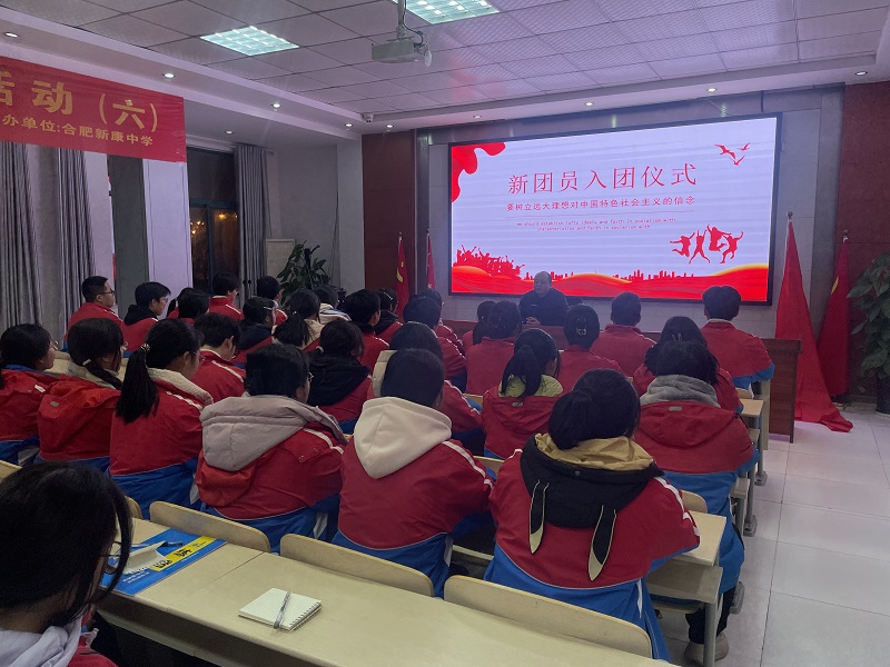 2024年12月26 日,合肥新康中学校园报告厅内团旗飘扬,歌声激昂,一场庄重而热烈的学生入团仪式在此隆重举行。此次入团仪式旨在凝聚青年力量,激发同学们的责任感与使命感,见证新一批共青团员的光荣诞生,为学校团组织注入新鲜血液。