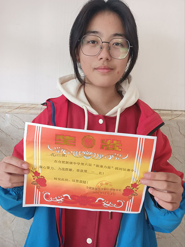 在新康的校园里,有着丰富的校园文化,不仅有校园歌手大赛,花样跳绳比赛,还有拔河比赛等等。很荣幸我所在的班级获得了第六届拔河比赛的第一名。在这次拔河比赛中,我深深的感受到了同学之间的团结友爱,收获了深厚的友谊之情。