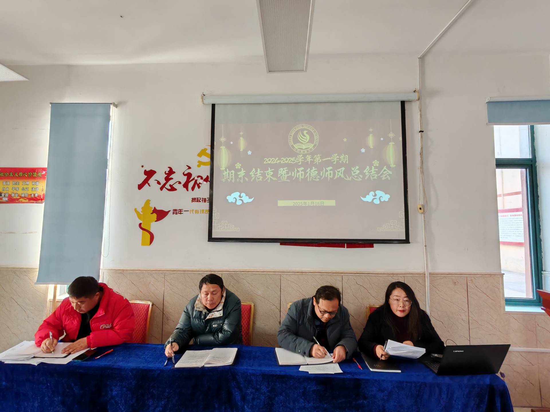 回顾2024,新康中学全体教职工心怀教育使命,实干笃志前行,以奋斗为笔,书写教育动人故事;以智慧为墨,绘就学校发展新篇章。为总结过去,展望未来,2025年1月16下午,我校召开了2024-2025学年上学期期末结束暨2024年度师德师风总结会议。会议由办公室王林主任主持。