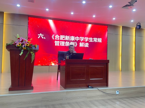 李超群主任对学校常规管理条例进行深入的解读,内容涵盖纪律、卫生、文明礼仪等方面,并明确阐述违规后果与处理方式,引导同学们们自觉遵守学校相关规章制度,营造良好的学风和班风。