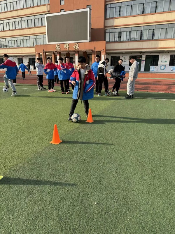 接着又进行了个人技术绕杆教学,设置8字绕杆路线(间距2米),要求学生带球依次绕过10个障碍,记录完成时间与动作规范性。最后,教师逐个指导点评,让优秀学生展示示范,并进行传球准确度小游戏。