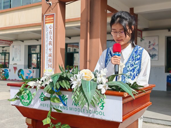 九(8)班汪艳清同学随后登台进行安全教育演讲。她以“安全,不是一道选择题”为主题,结合校园生活实际,深入剖析安全的多重维度,从课堂安全、课间安全、上下楼安全,到交通安全、消防安全、防溺水安全等,皆是与生命紧密相连的课题。“安全不是一道选择题,而是贯穿生活的必答题。”汪艳清呼吁同学们主动学习安全知识,积极参与应急演练,从拒绝危险行为做起,人人成为校园安全的“守门员”。