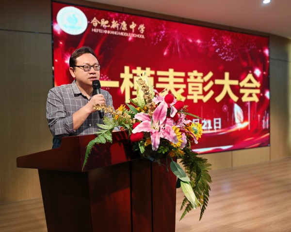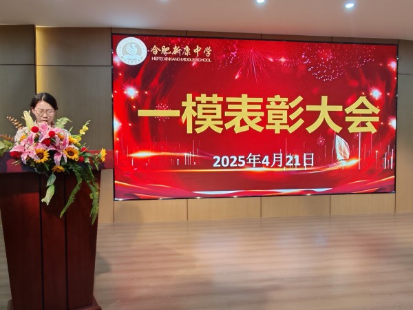 合肥新康中学九年级全体师生于2025年4月21日齐聚学校报告厅,隆重举行一模考试表彰大会。大会以“激情燃烧心灵,奋斗成就梦想”为主题,通过表彰先进、分享经验、集体宣誓等环节,激励全体毕业班学子以昂扬斗志迎接中考挑战。