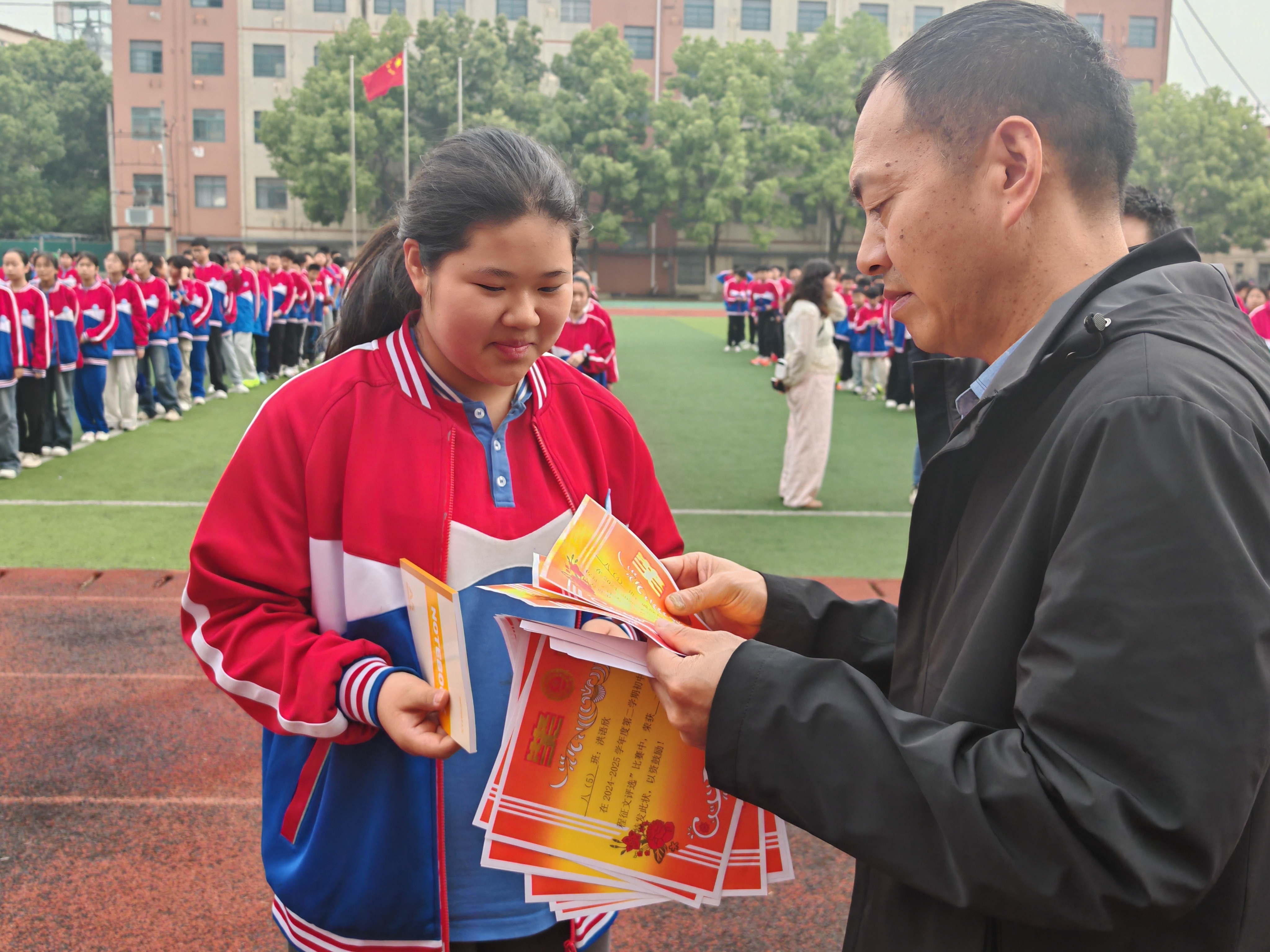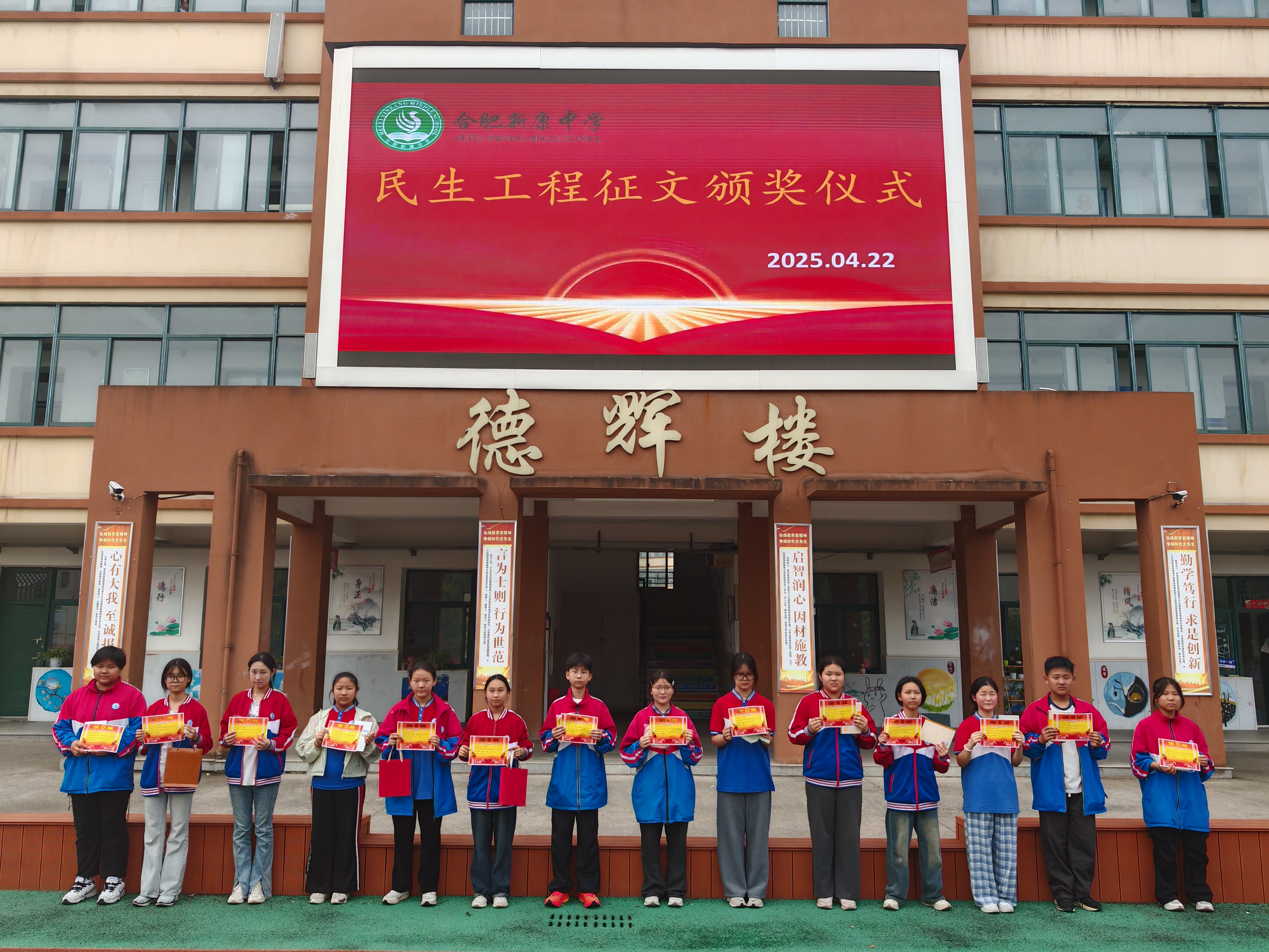 在征文活动颁奖仪式上,学校为评选出的优秀征文学生颁发奖状与奖品。 希望以此次活动为契机,同学们继续用敏锐的双眼发现身边的民生之美,以实际行动践行共建共享之责,激发为民奉献、为民造福的理想信念,在未来成长道路上,为建设更加美好的社会贡献青春力量。