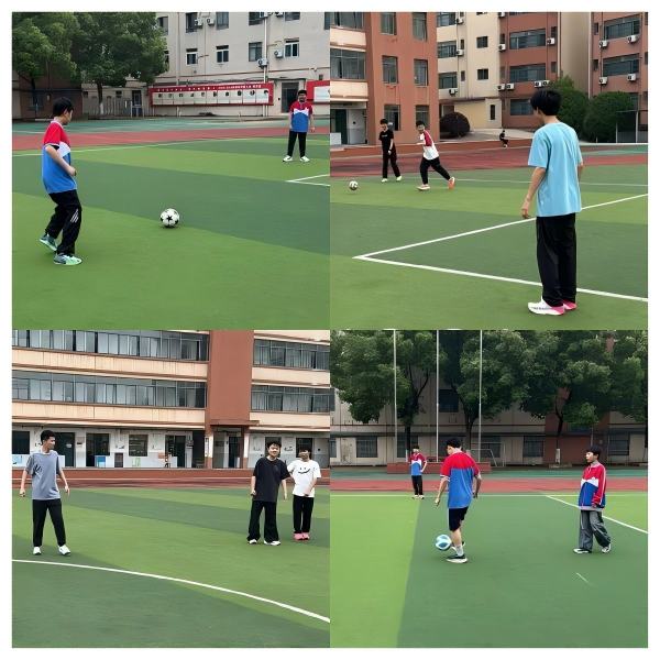 随后,学生们进行了10分钟的传接球练习和球性练习。练习中,重点强调了传球的准确性和接球的稳定性,通过两人一组互相传球的方式,逐步提升球感和技术动作的自然协调性。学生们认真模仿老师的示范动作,传球动作逐渐规范。
