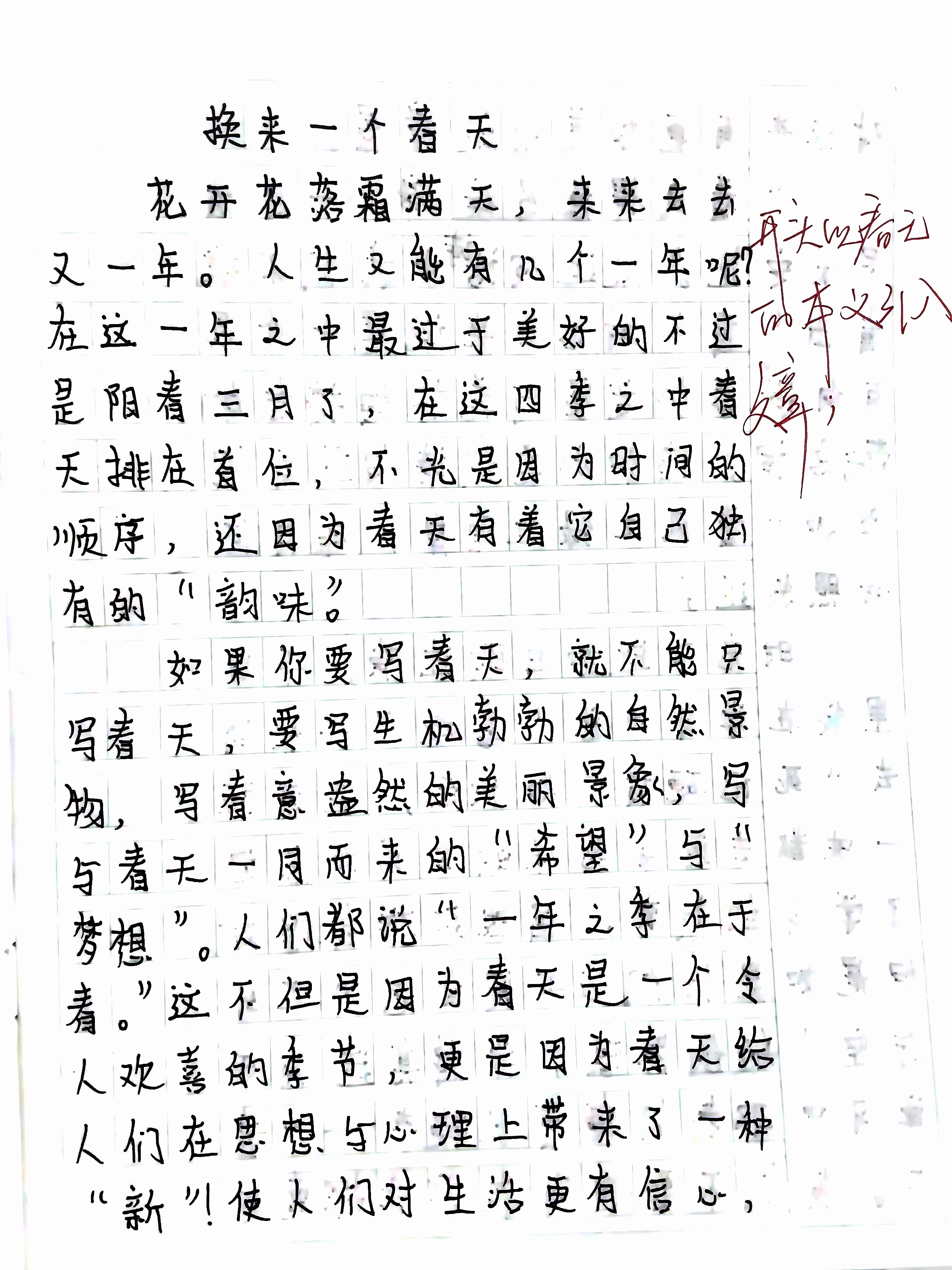九年级:有人说:“当你无法推开一扇门时,不妨拉一拉试试。”生活中,尝试换一下角度、换一下心境、换一下身份、换一下思路......我们也许会更容易走出困境,邂逅美好。以“换来一个春天”为主题,写一篇文章。
