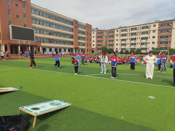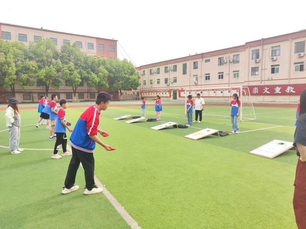 5月13日下午大课间,我校七年级校园里洋溢着热烈的运动氛围,一场别开生面的“沙包板”投准比赛精彩上演,七年级全体学生踊跃参与,用热情与活力诠释青春风采。