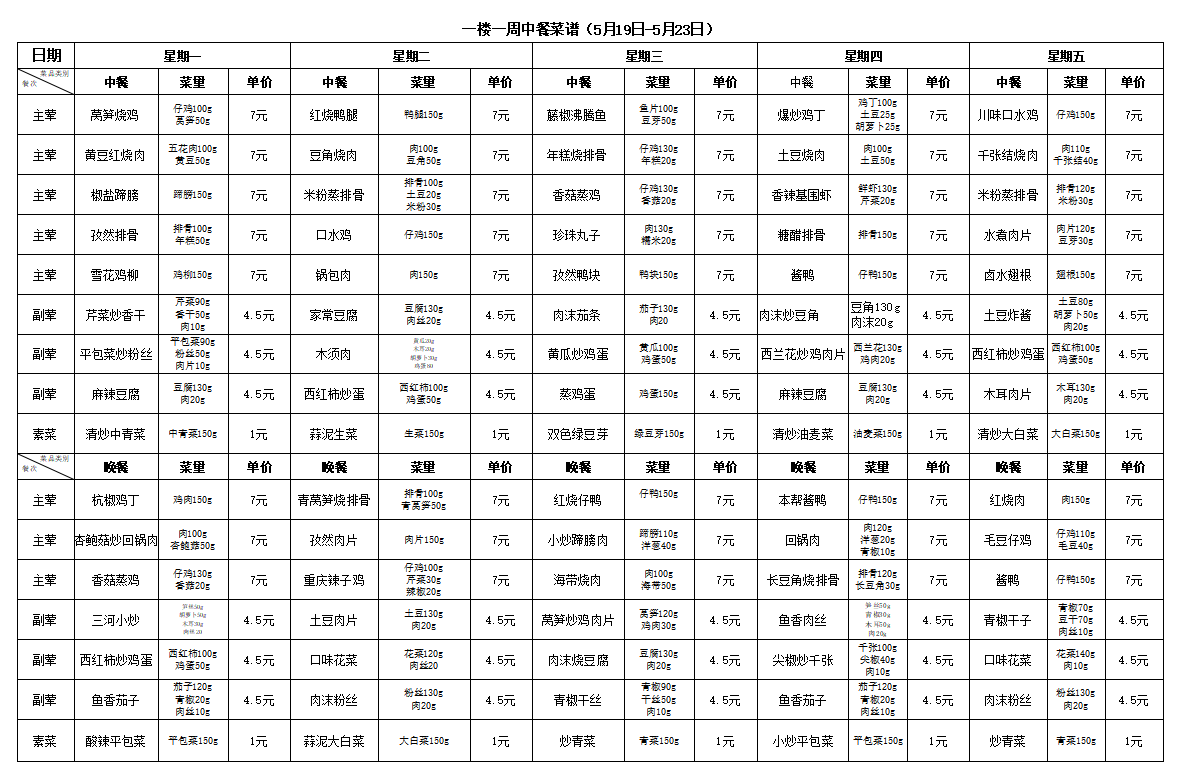 合肥新康中学食堂一周菜谱(5月12日-5月16日)