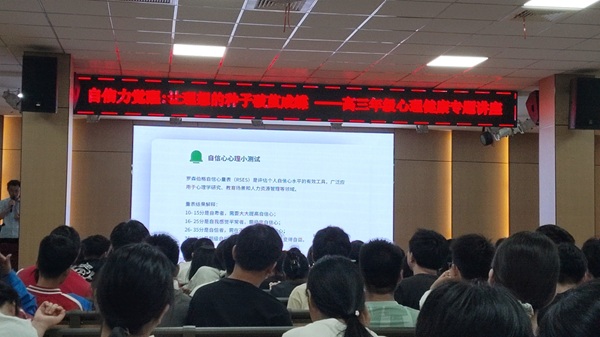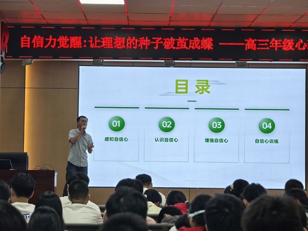 为助力高三学子以积极状态迎接高考,2025年5月18日晚,我校在报告厅开展“自信力觉醒:让理想的种子破茧成蝶”心理健康专题讲座,由盛爽老师主讲,全体高三学生参与。