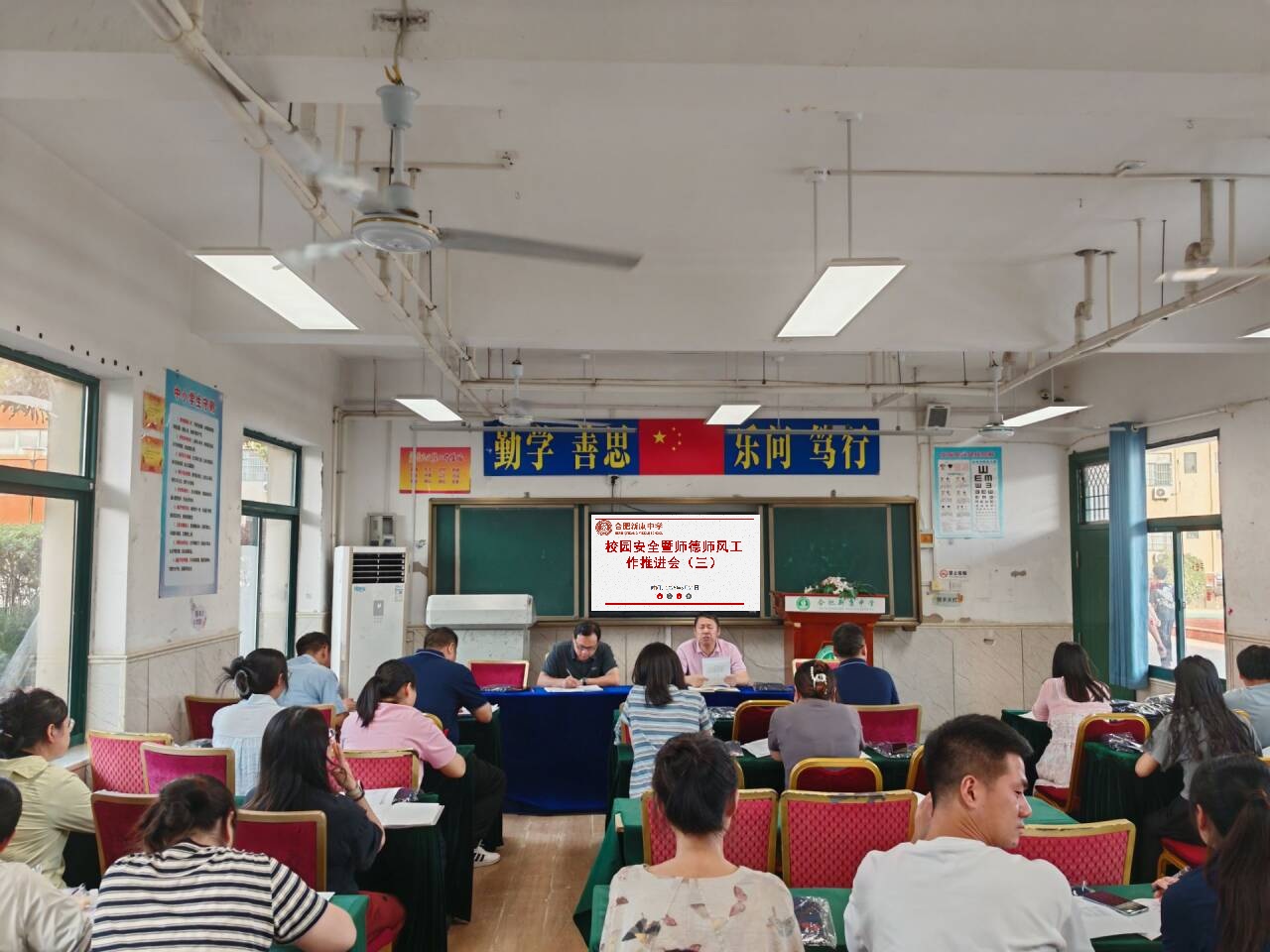 为切实保障校园安全稳定,营造安全有序的教育教学环境。5月21日下午,我校初中部召开了校园安全暨师德师风推进会议,徐校长主讲。