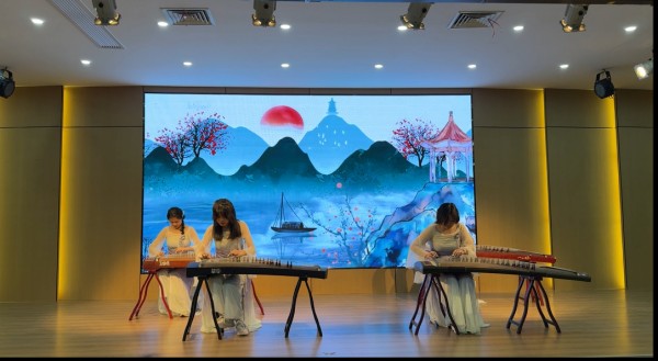 文化展演环节将活动推向高潮。古典舞《碇步桥》以水袖翩跹勾勒水墨意境;古筝和奏《惊蛰》琴声悠扬,演绎知音文化的千年回响;经典诵读《瓷语》声震云霄,尽显少年壮志;小品《万松书院》以幽默剧情还原古代书院生活引发阵阵欢笑与掌声,同学们在演绎中感受文明之美。