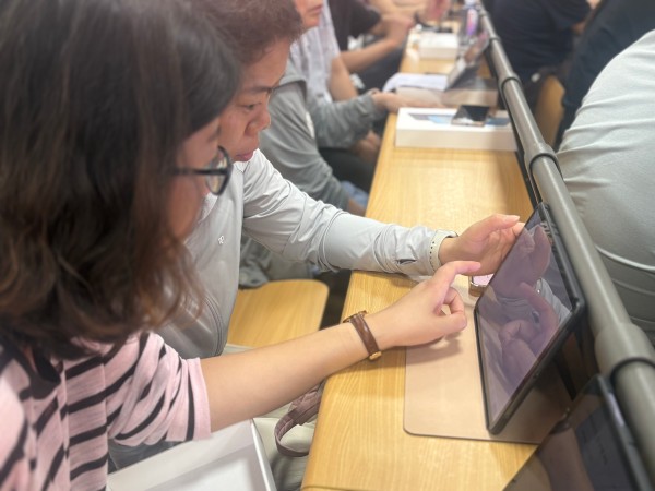 为进一步巩固培训成果,活动设置了现场实操演练环节。教师们操作平板电脑,模拟智慧课堂场景,尝试发布任务、实时反馈、数据统计等功能。大家积极交流心得,探讨如何将技术与学科教学深度融合,现场氛围热烈。参与教师纷纷表示,智慧课堂工具的应用将为教学注入新活力,助力打造更高效、更生动的课堂。
