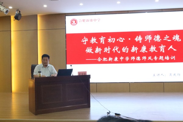 吴庆防书记以“守教育初心·铸师德之魂,做新时代的新康教育人”为主题,进行了师德师风专题培训。他通过案例分析,引导教师严守职业规范,树立良好师表形象。吴书记强调,师德是教育的灵魂,教师应时刻牢记责任与使命,以德立身、以德施教。