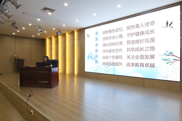 殷琳莉老师结合自身丰富的班主任工作经验,分享了班级管理策略、家校沟通技巧及学生心理健康教育等内容。她通过生动的案例,展示了如何打造和谐班集体,助力学生全面发展。