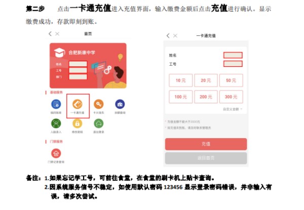 3.请各位家长给孩子饭卡提前充值好,充值操作如下: