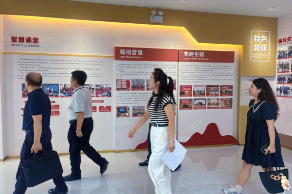 检查组首先在校领导的陪同下参观了学校校史馆,通过丰富的图文资料,深入了解了新康中学的办学历史、发展历程及取得的丰硕成果,对学校深厚的文化底蕴和鲜明的办学特色给予了高度评价。