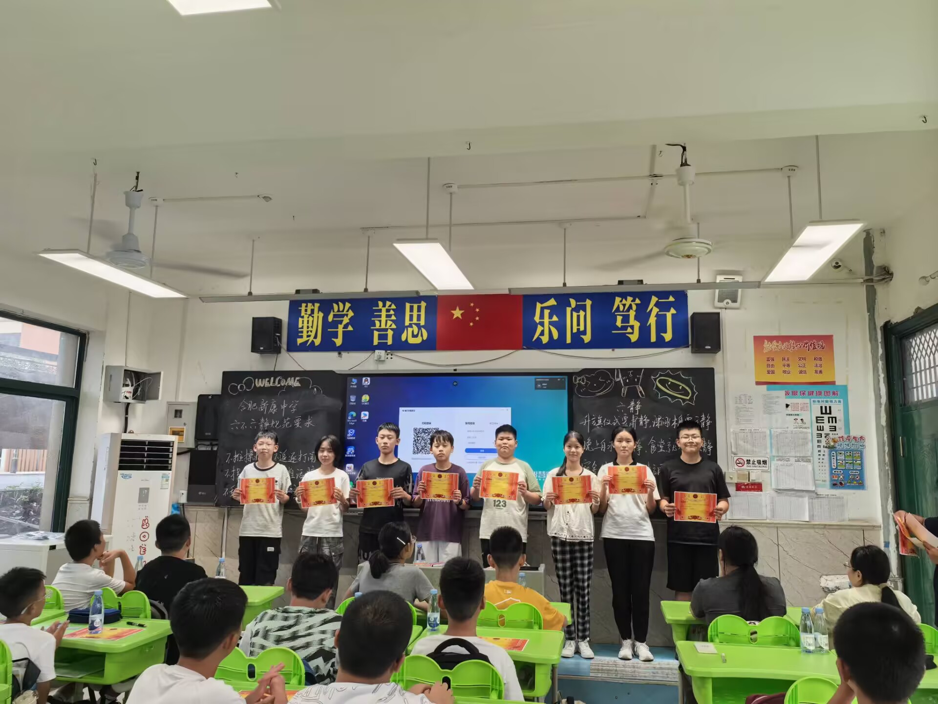 入学教育的尾声,表彰环节为优秀者加冕。当老师念出“文明标兵”“劳动标兵”“优秀小班干”等名单时,台下瞬间响起热烈掌声。获奖的新生们挺直胸膛走上讲台,从老师手中接过荣誉证书,脸上绽放出骄傲的笑容。这份表彰,不仅是对同学们这两日入学教育中奋发努力的肯定,更像一束光,照亮了所有人的进取之路,让“向优秀看齐”的种子在心中悄悄扎根。