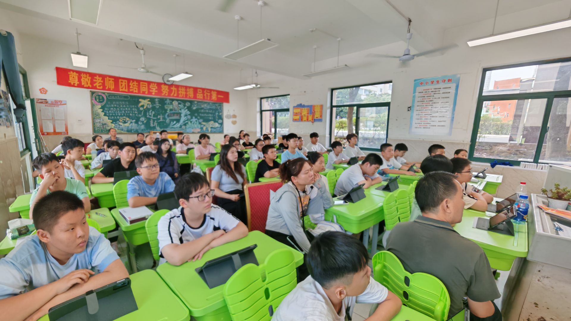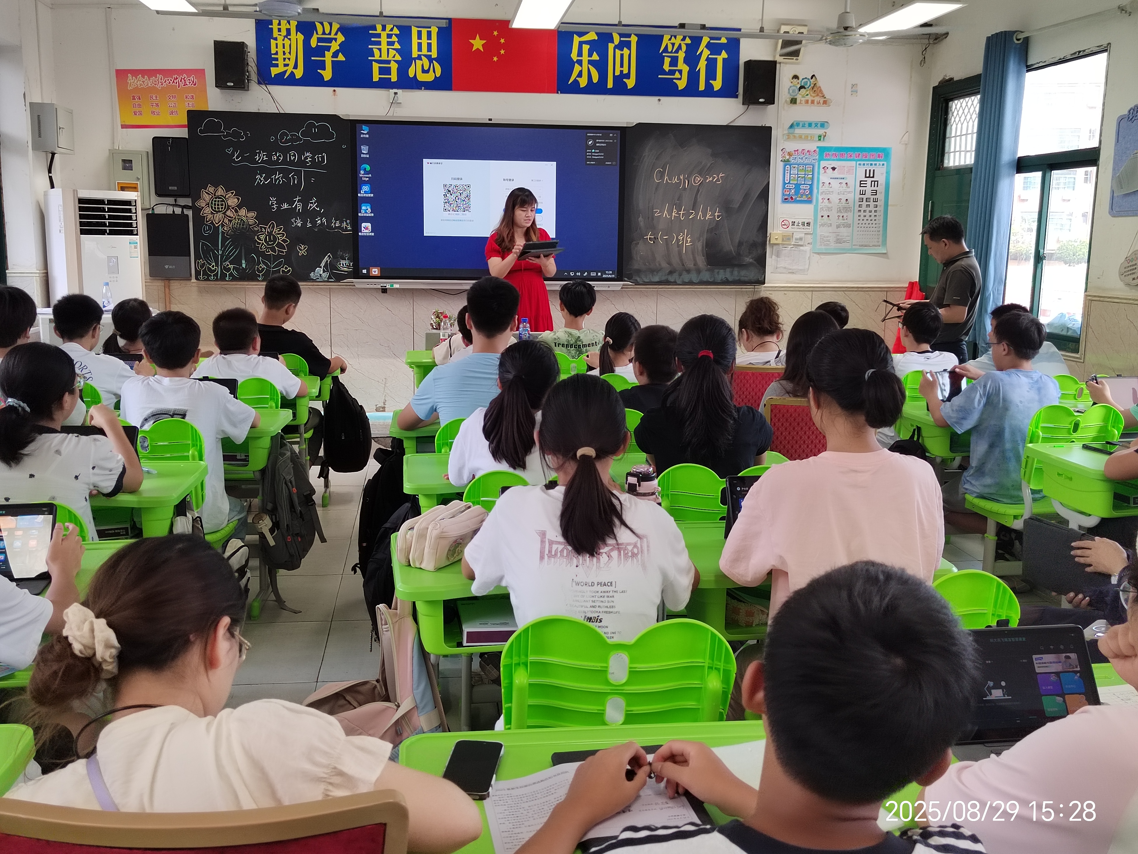 2025年8月29日,合肥新康中学七年级新生迎来了入学教育的第一堂智慧课堂课。本堂课以师生互动为核心,旨在引导学生有效利用平板资源辅助学习。