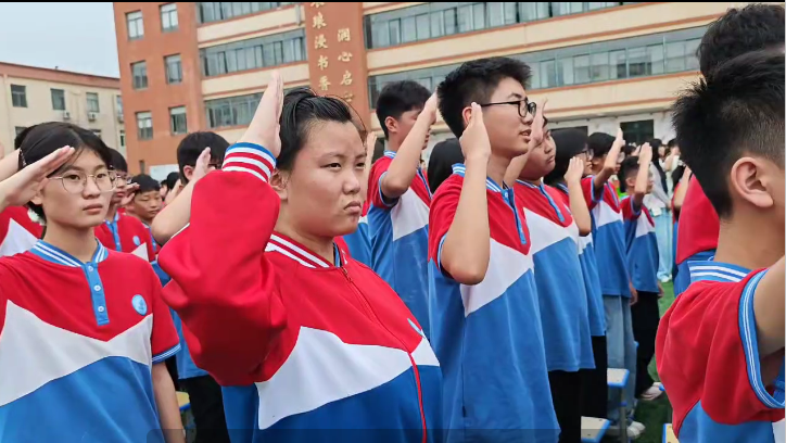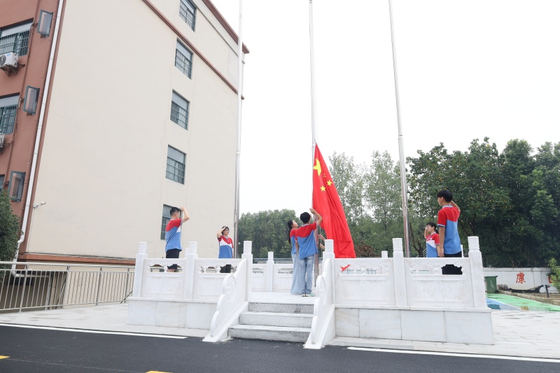 随后,升旗仪式开启。全体师生肃立,目送国旗护卫队迈着整齐步伐护旗入场;国歌奏响时,五星红旗冉冉升起,师生行注目礼,少先队员敬队礼。爱国与爱校的情怀在心中激荡。