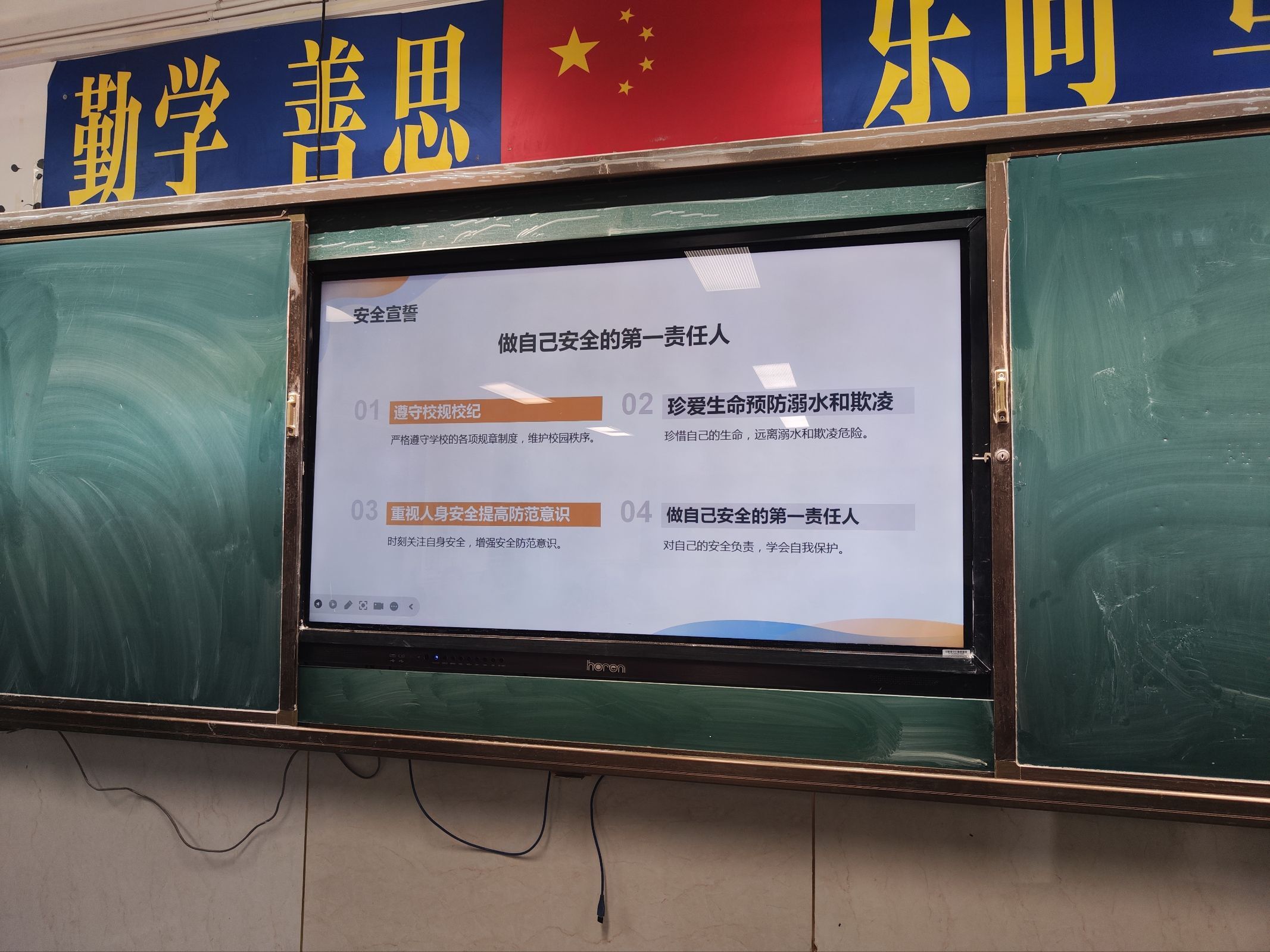 班会尾声,全体同学高举右拳,庄严宣誓:“珍爱生命,远离危险;遵守规则,守护安全;拒绝欺凌,阳光同行!”整齐洪亮的声音将活动推向高潮。