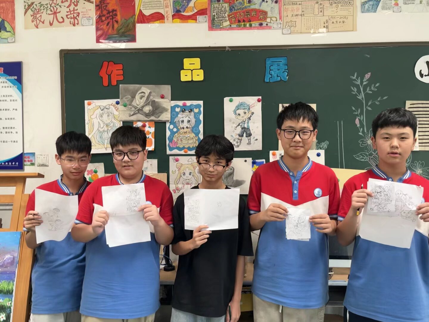 在本次美术社团课程中,同学们开启了一场经典动漫人物的绘制之旅。课程伊始,大家用铅笔轻轻起稿,精心勾勒出角色的轮廓,为作品奠定坚实基础。随后,换用勾线笔细致描边,使画面线条清晰流畅,增强了作品的立体感。最后,同学们充分发挥创意进行上色,让笔下的动漫人物鲜活起来。经过努力,一幅幅独一无二的精美作品呈现出来,展现了同学们的绘画才华与创造力,社团氛围热烈,活动效果显著。