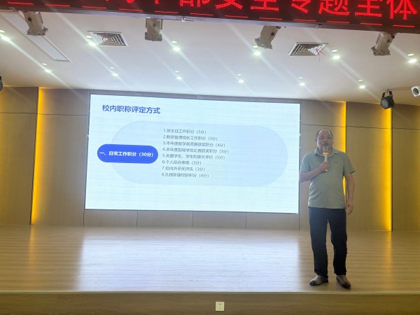 会议第二项议程由段校详细解读校内职称方案。此次职称改革是学校教师队伍建设的重要举措,旨在建立更加科学、公正、透明的职称评价体系,激发教师专业发展内驱力。