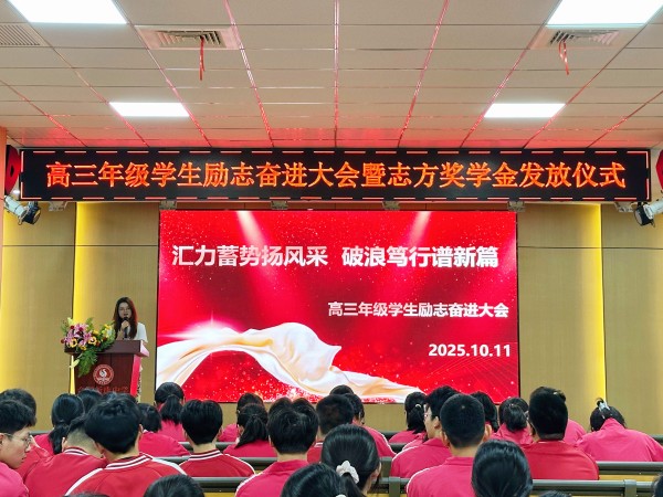 为凝聚高三备考力量、激发学子奋进斗志、明确阶段学习目标,10月11日上午我校以“汇力蓄势扬风采 破浪笃行谱新篇”为主题,召开高三年级励志奋进大会暨志方奖学金发放仪式。全体高三师生及校领导参会,共同为高考备考凝聚力量、擂响战鼓。