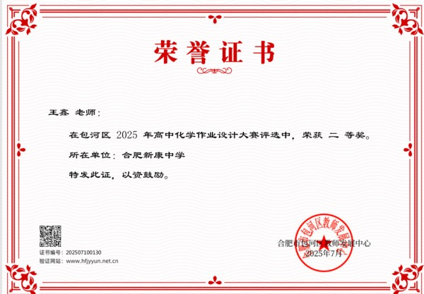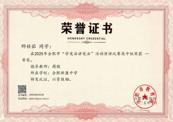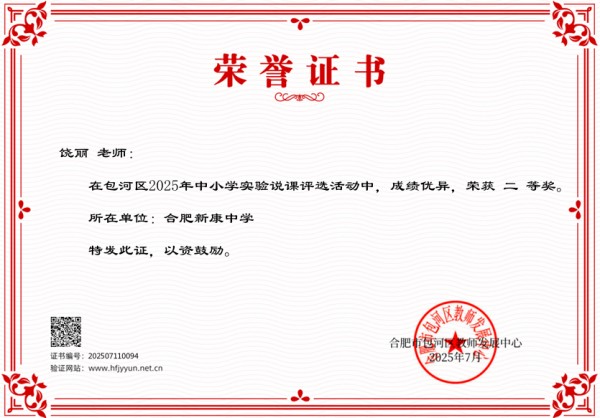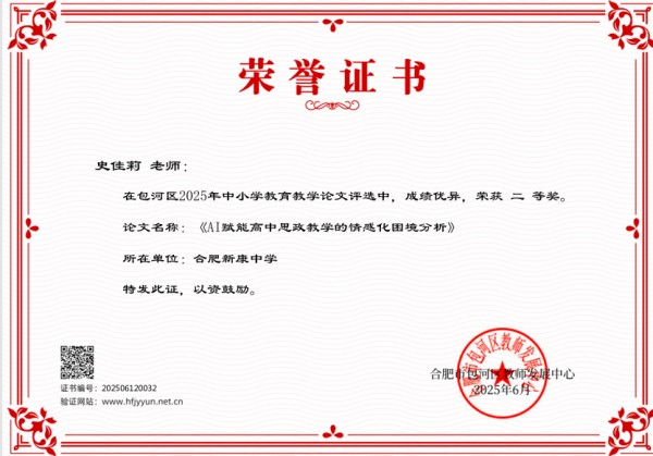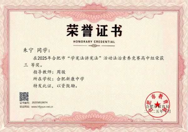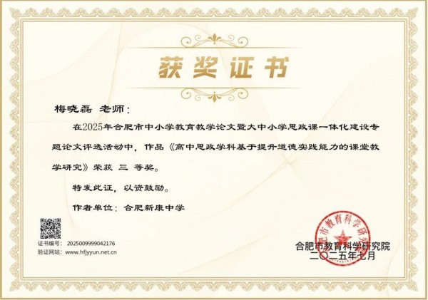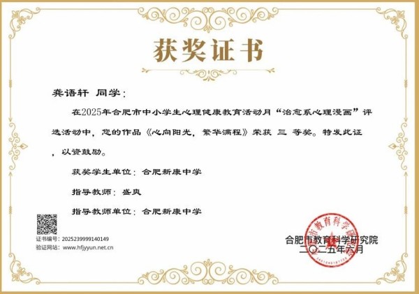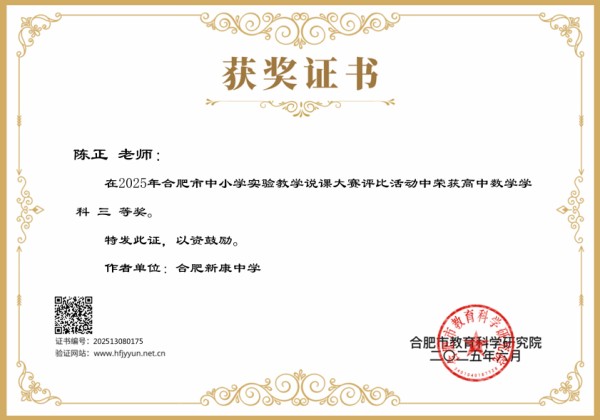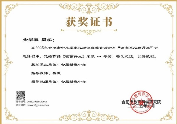 教师佳绩,源于其深耕教坛的专业素养与不懈追求;学生殊荣,离不开其勤勉不辍的努力与自信拼搏。这份“双喜临门”的硕果,既是师生个人能力与风采的精彩展示,更是合肥新康中学高度重视师资队伍建设、全面落实素质教育结出的必然硕果。荣誉是里程碑,更是新起点。此次竞赛的全面丰收,必将进一步激发全校教师潜心教研的热情,增强莘莘学子勇攀高峰的信心。合肥新康中学将以此为契机,继续营造教学相长的优良生态,为师生成长赋能,在教育高质量发展的道路上再谱华章!