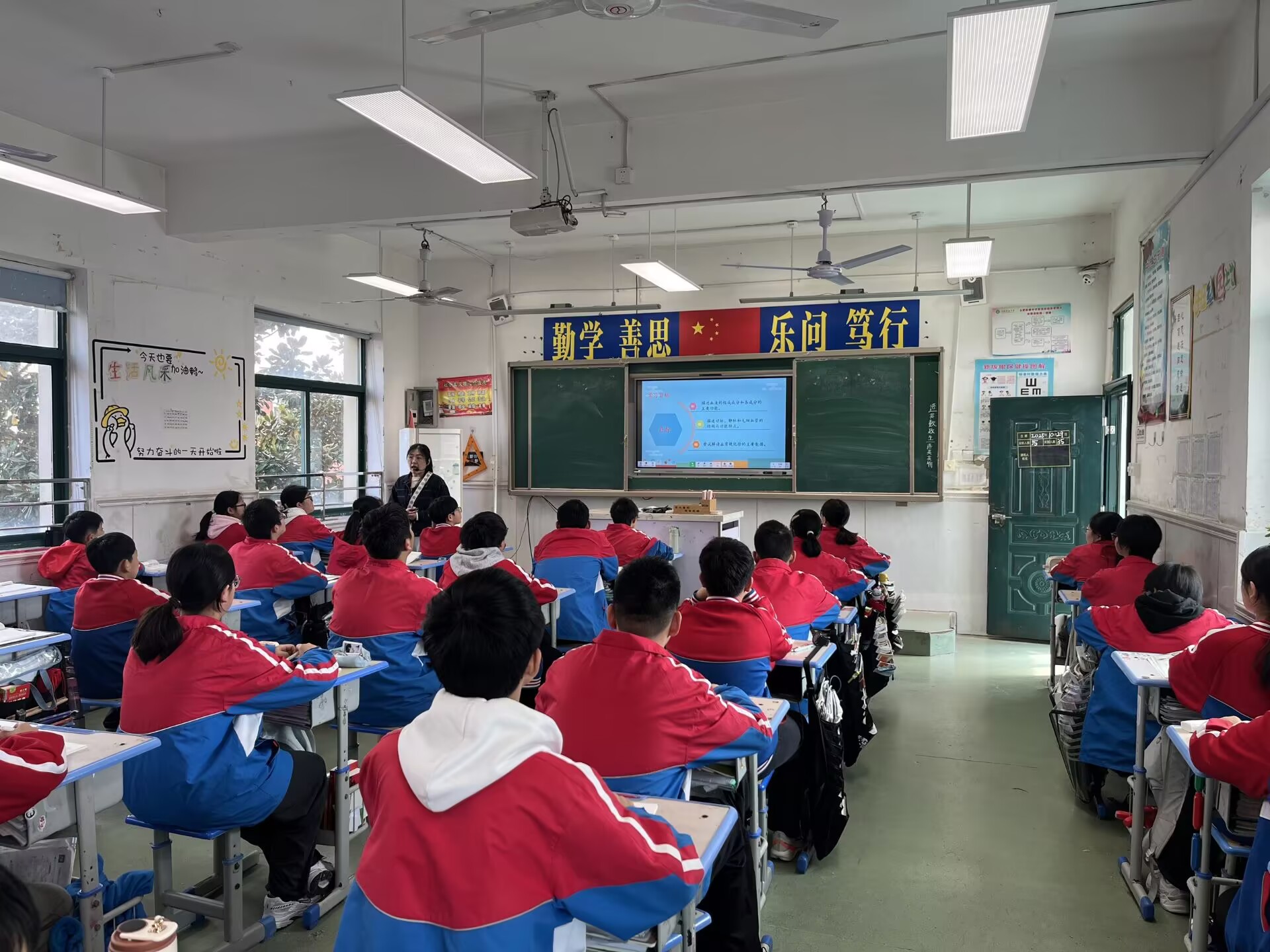 2025年10月29日上午第四节课,杨娟老师在八(2)班成功开展了一节课题为《血液、血管和心脏》的公开课。课堂伊始,杨老师以生动形象的语言和丰富图片,带领学生认识人体循环系统组成,并巧用血常规化验单导入新课,激发学习兴趣。