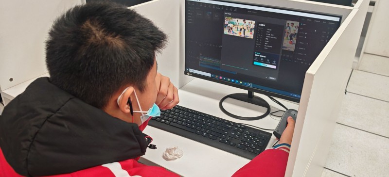 ◆视频剪辑社团:本周视频剪辑社团聚焦‘开心一刻钟’,以踩气球游戏作为素材进行视频制作。先学习用豆包,以提示词生成视频封面。制作16:9比例的模板。再导入开心一刻钟的素材,进行剪辑处理。课程内容与学生生活紧密相关,形式活跃有趣、引人入胜。