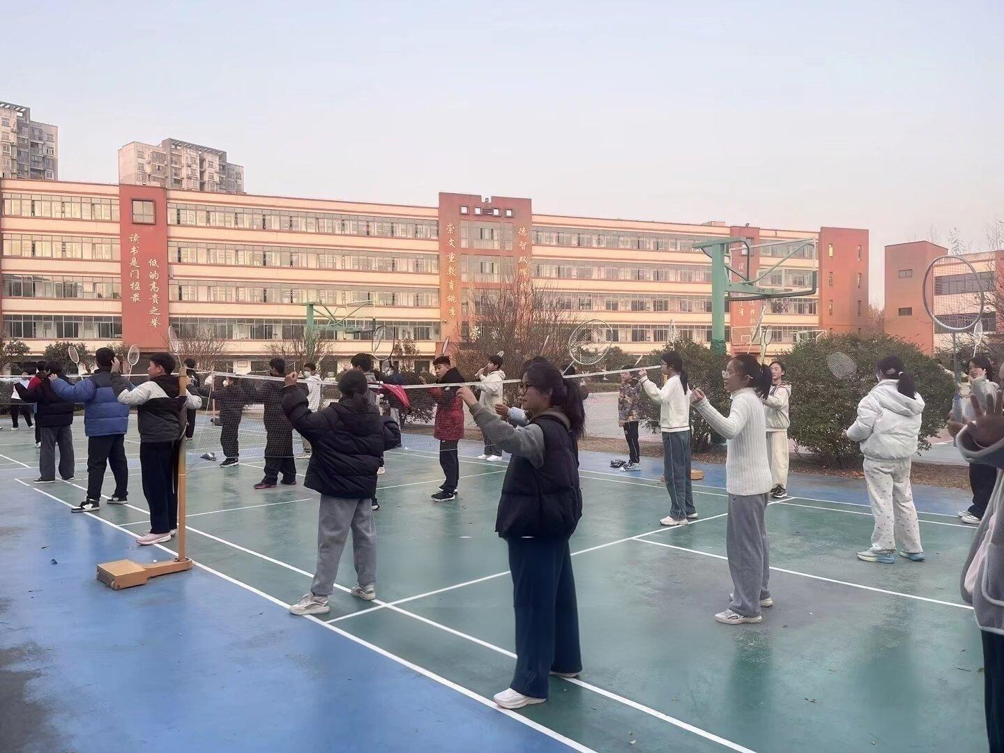 ◆羽毛球社团:今日羽毛球社团组织学生系统复习所学技术动作,强化动作规范性。社团将各项技术汇编成羽毛球操,结合音乐进行跟练,提升节奏感与协调性。同时,针对动作细节进行逐一细化指导,夯实基本功,全面提升学生技术水平。