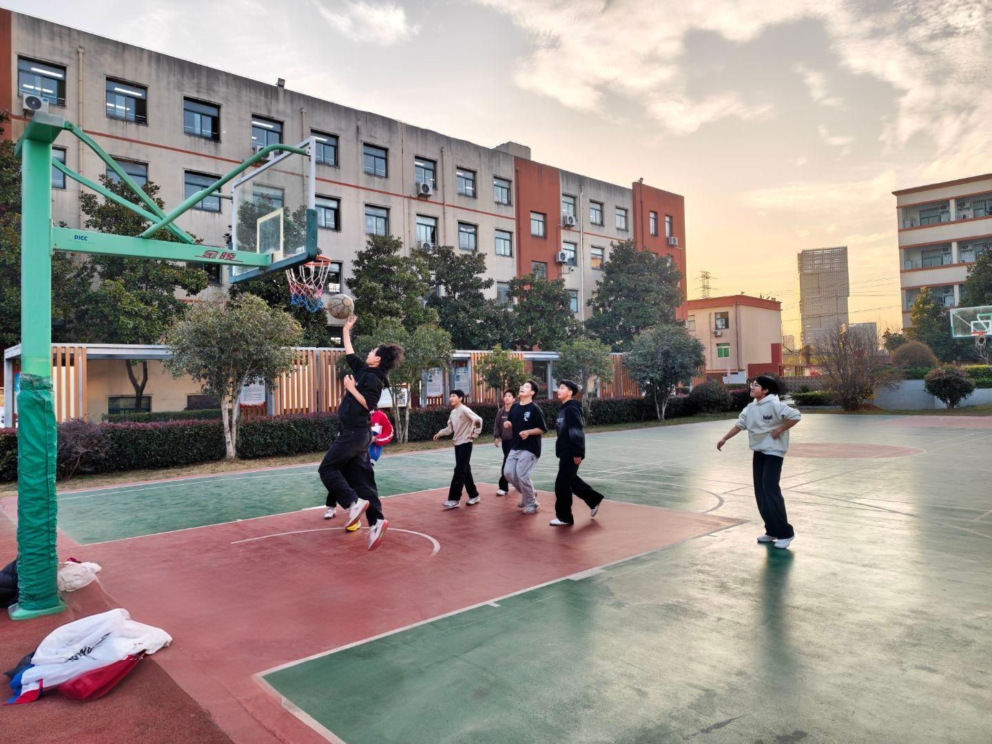 ◆篮球社团:今日篮球社团组织学生对所学技术动作进行逐一复习,巩固运球、传球、投篮等基本技能。同时,教练详细讲解了中考篮球考试项目要求,重点解析动作规范与评分标准,并进行标准动作示范,帮助学生明确训练方向,提升应试能力。