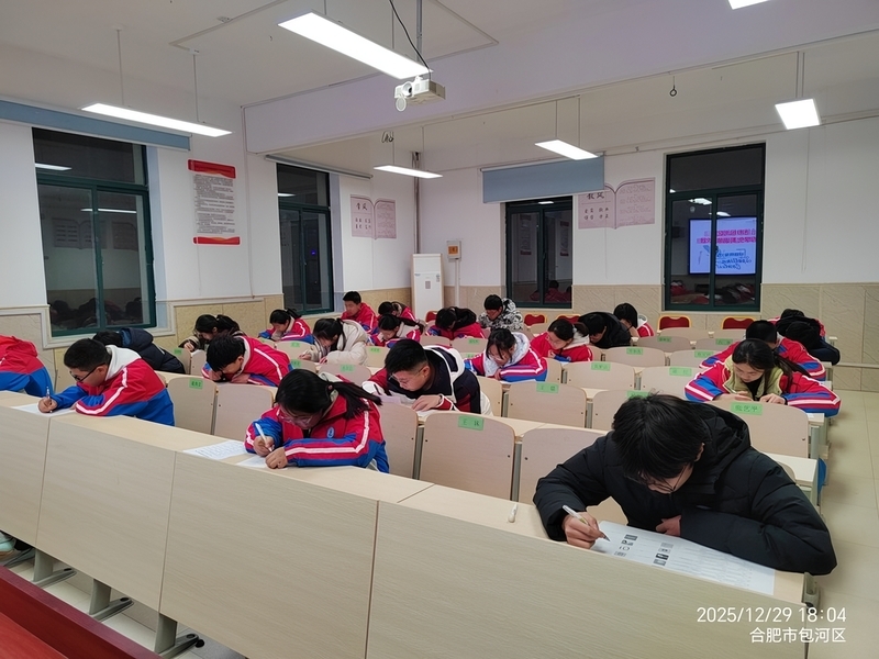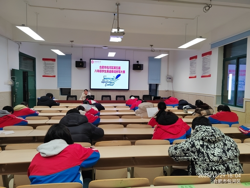 为激发学生英语学习热情,夯实词汇基础,全面提升语言综合运用能力,2025 年 12 月 29 日,合肥新康中学隆重举办合肥市包河区第五届八年级学生英语单词拼写大赛校内初赛。经过前期八年级全员参与的海选选拔,近40名英语词汇功底扎实的学子脱颖而出,齐聚学校会议室同场竞技,在笔尖流转间展现青春朝气与语言潜能。