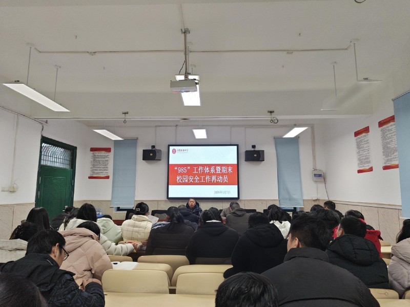 为深入贯彻落实校园安全工作相关要求,织密校园安全防护网,保障师生生命安全与校园和谐稳定,2025年1月7日下午,合肥新康中学初中部组织召开“985”常态化工作体系推进暨校园安全工作再动员会议,对校园安全各项工作进行再强调、再部署、再落实。初中部全体教师参加会议。