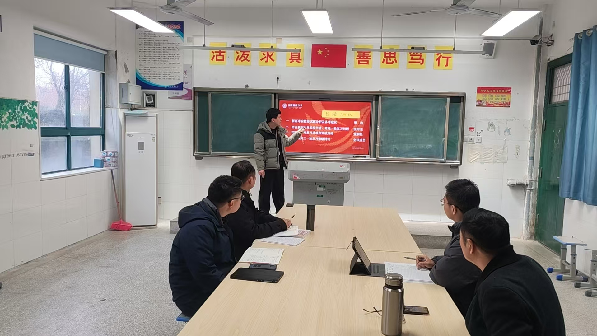 物理教研组围绕新高考安徽卷分析、学情诊断、重难点突破及备考方案制定召开专题研讨会。学科主任樊浩老师首先分析命题“深化基础、突出综合”的趋势,强调回归教材、构建网络。汪河北老师结合学情,指出学生存在规范缺失、过程分析不透等问题,提出狠抓规范、跟踪辅导等建议。董朝民老师则分享以梯度问题链引导学生自主攻克思维难点的教学经验。