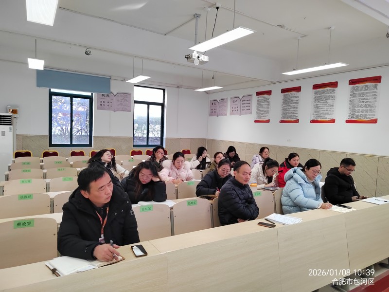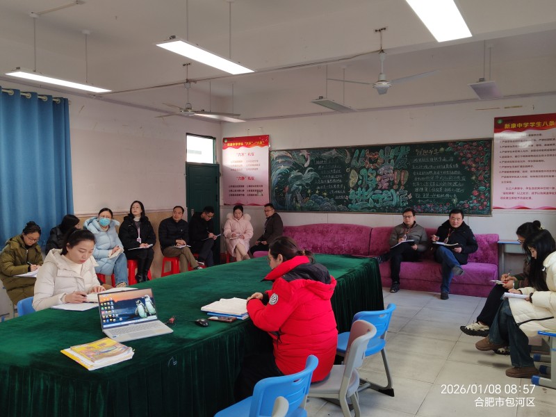 2026年1月8日,合肥新康中学初中部在会议室召开以“总结反思,蓄势启航”为主题的备课组长工作会议。全体备课组长及教学管理相关人员参会,会议由教务处组织,旨在深化集体备课实效,提升教学质量,总结本学期教学成果,并部署期末各项工作。