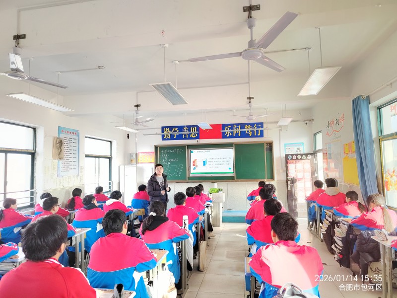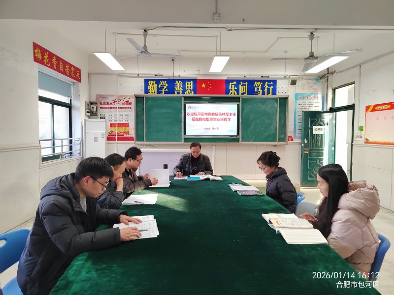 2026年1月14日,区教研员林军老师莅临合肥新康中学,深入九年级物理课堂,开展教学视导工作。林老师听取了徐小雪、韦超两位教师的常态课,全面了解九年级物理教学实施情况。