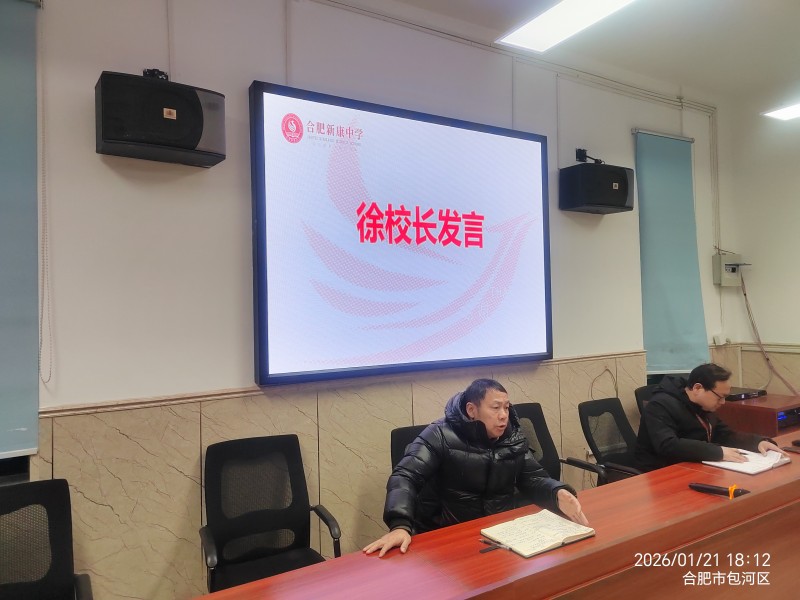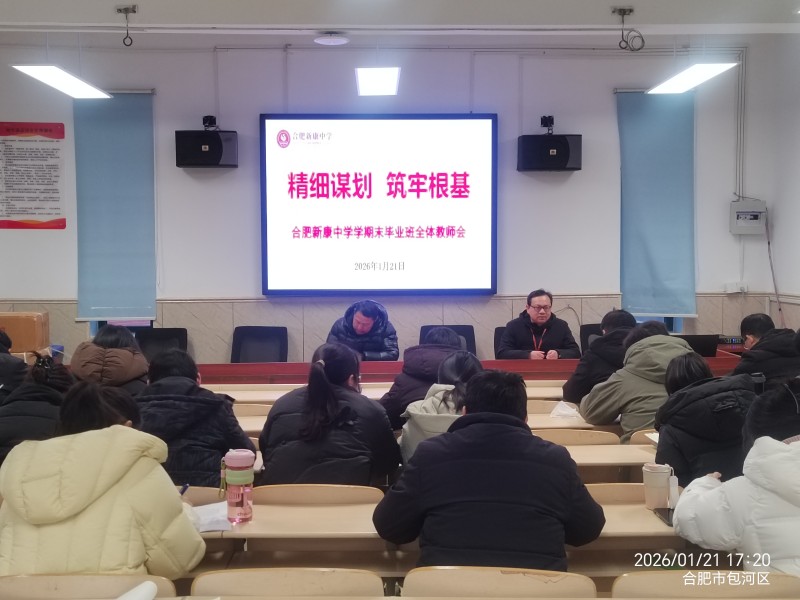 1月21日,合肥新康中学组织召开九年级毕业班全体教师工作会议。龚红卫副校长首先全面总结本学期毕业班教育教学工作,科学部署后期复习安排,并提出具体要求:寒假期间要严格落实“每日检查反馈、每周一次线上答疑”机制,充分借助期末家长会契机,引导家长积极参与学生管理,形成家校合力;各备课组须提前制定详实复习计划,聚焦基础,精准施策,夯实教学根基。
