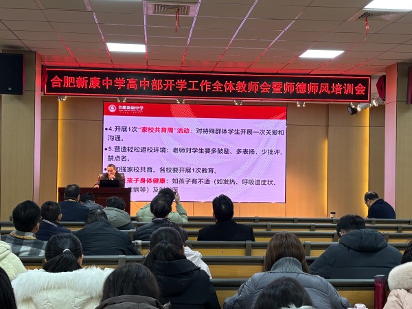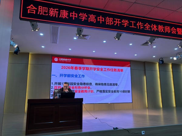 为切实做好2025-2026学年春季学期开学各项工作,确保师生安全和教育教学秩序井然,3月2日,合肥新康中学高中部召开春季开学安全工作会议暨师德师风专题会议。