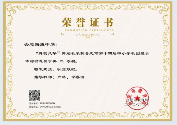 紧接着,由36位同学带来的舞蹈《幸运一击》闪亮登场,本场舞蹈在合肥市第十四届中小学社团展示中荣获二等奖。动感的节拍、灵动的舞步,展现了青春的活力与激情。每一个跳跃都饱含力量,每一个笑容都绽放光芒。