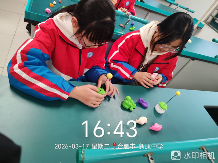 本次活动先展示彩泥盆栽范例并讲解要点。学生自选主题创作,学习用深浅绿色彩泥捏制叶茎以营造层次感,再搭配迷你摆件构建微景观。最后选取3-5件作品展示,由创作者阐述思路,同学互评优点与创意。